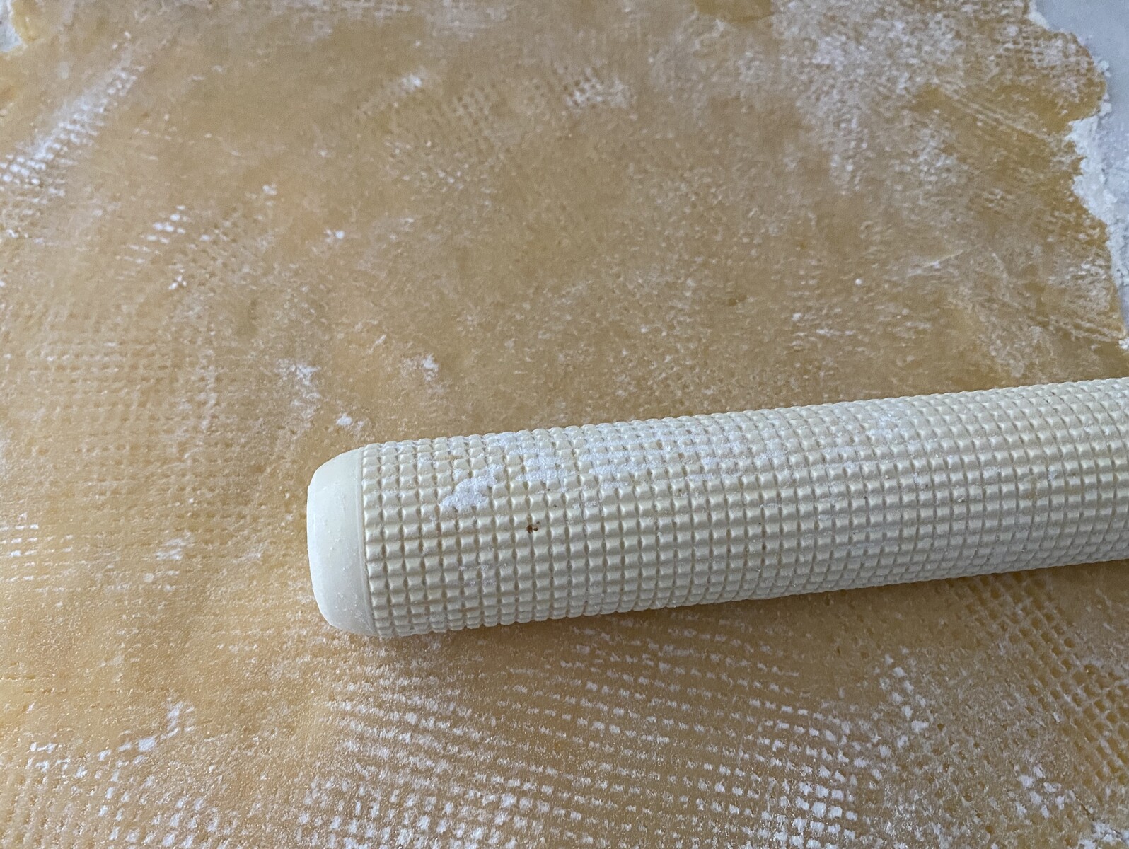 ③やすませた生地の100gを残して 後は5mm厚さにのばして