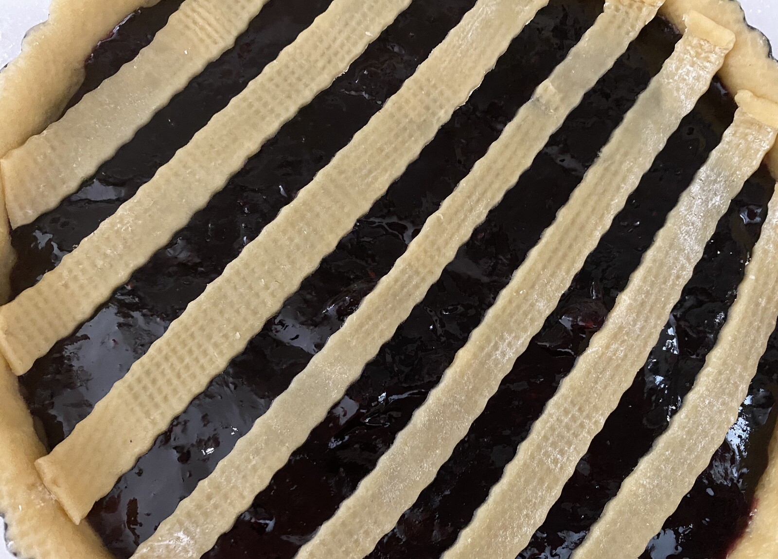 薄くのばして1cmのひも状にに切ってジャムの上に
