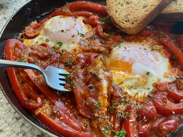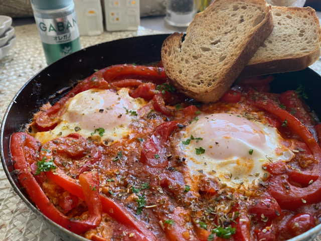 ★パンを添えて黄身を崩してパプリカと絡めていただきます