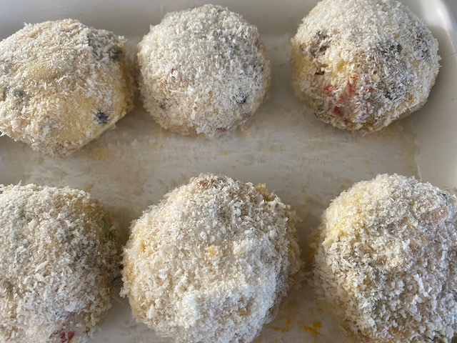 ④8等分にして丸めてから小麦粉・溶き卵・パン粉をつけ