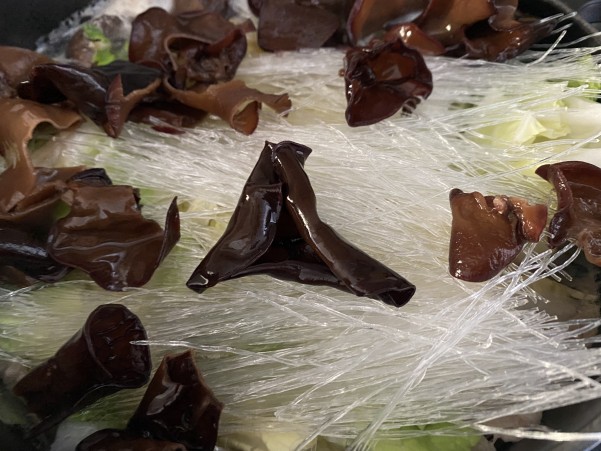 白菜の葉っぱの部分と戻したきくらげ