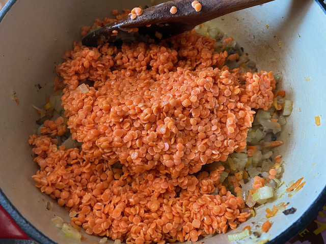 今回はオレンジ色のレンズ豆です