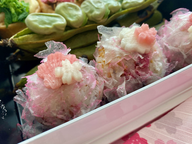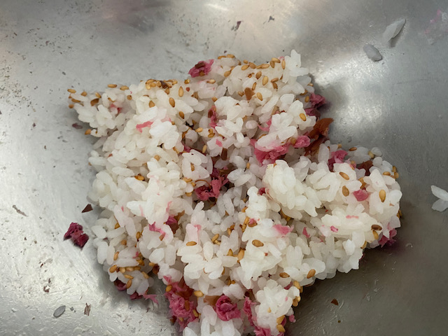 炊き立てご飯に 塩抜きした桜の花を刻んで