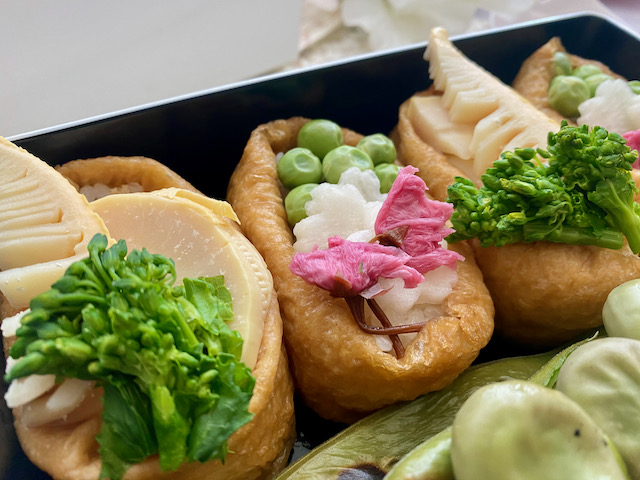 たけのこと菜の花 桜の塩漬けとグリンピースの