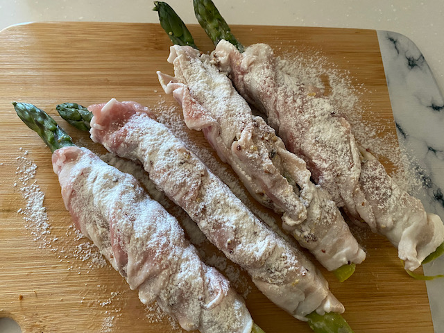 ★アスパラを茹で 肉を巻きつけるところまで前の晩に準備して置くと
