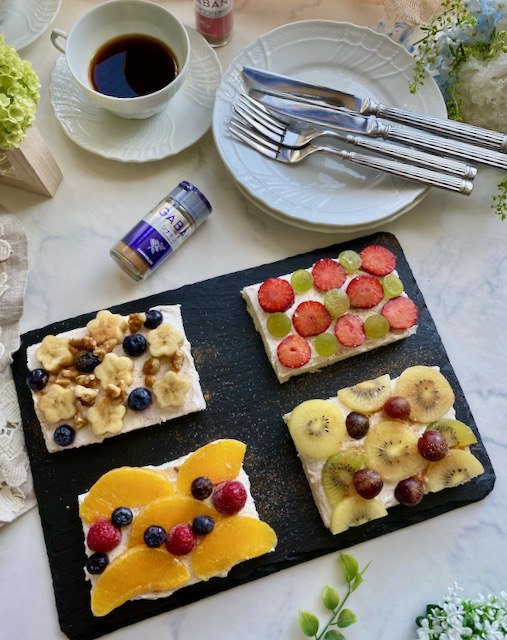 それでは今回作ったフルーツオープンサンドの組み合わせをご紹介