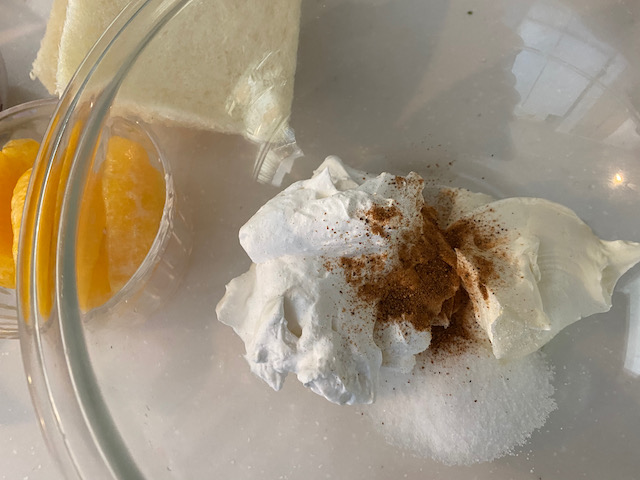 ②マスカルポーネとホイップした豆乳クリーム グラニュー糖 シナモンを