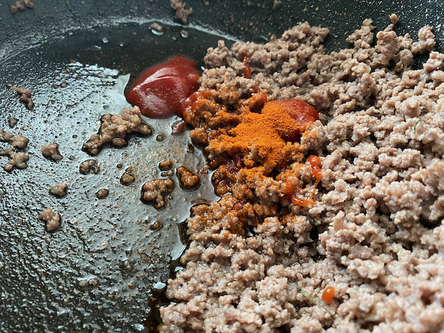 ★ひき肉は 炒めて出る余分な油をしっかり切ってください