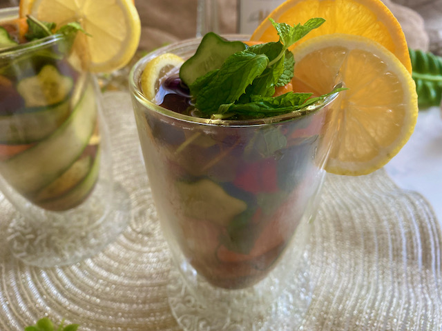 ピムスに きゅうり オレンジ レモン ミントを加えました