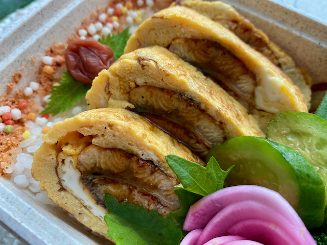 週初め月曜日の夫弁当は 作り置きしておいた「う巻き」メインです