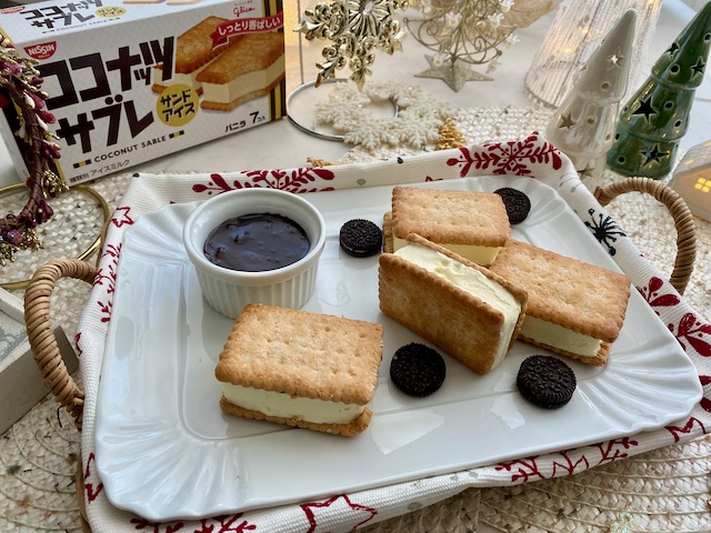塩気のあるココナッツサブレと バニラアイスの相性はバッチリ
