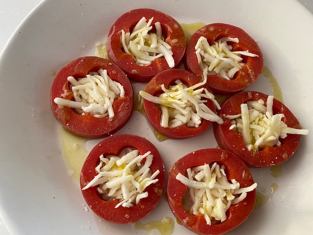中に溶けるチーズをぎゅうぎゅうに詰めオリーブオイルをふり