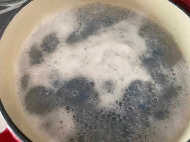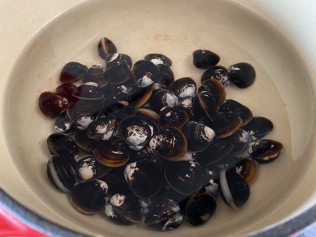アクをすくい取り 貝が開きかけたら