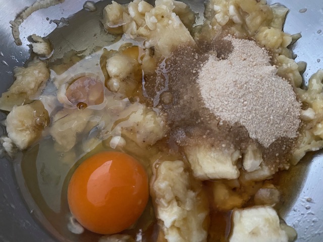 ①つぶしたバナナにaを加え