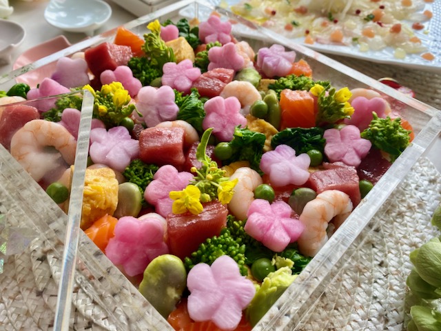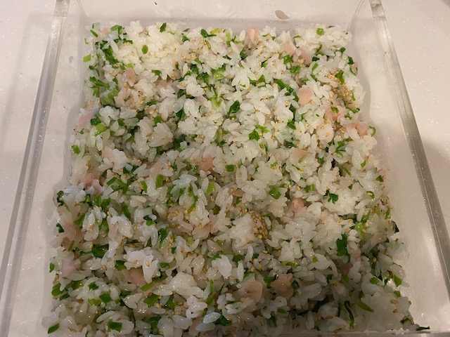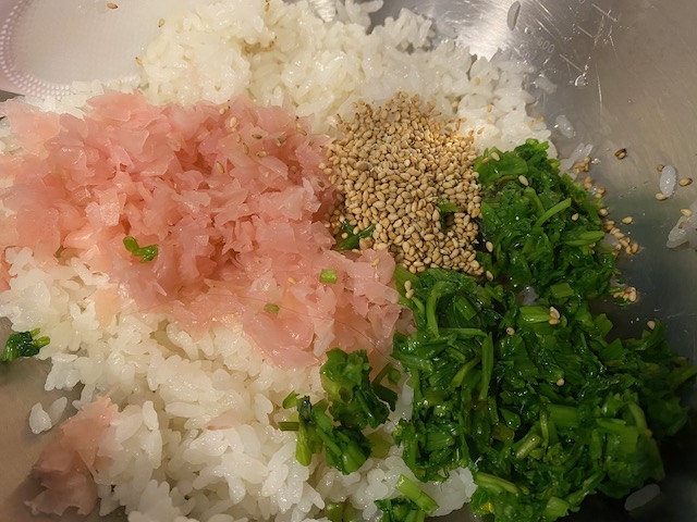 今年は せりと甘酢生姜 白ごまを混ぜた酢飯に