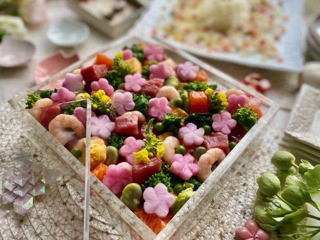 マグロやサーモン 茹で小エビ 卵焼きの他に