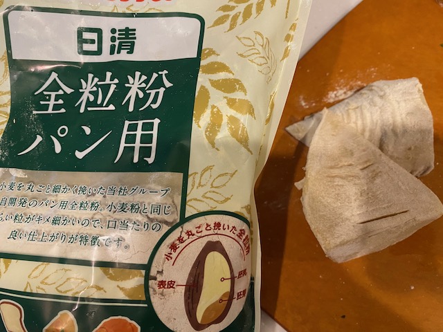 全粒粉を全体にまぶして焼くと表面がカリッとして香ばしく