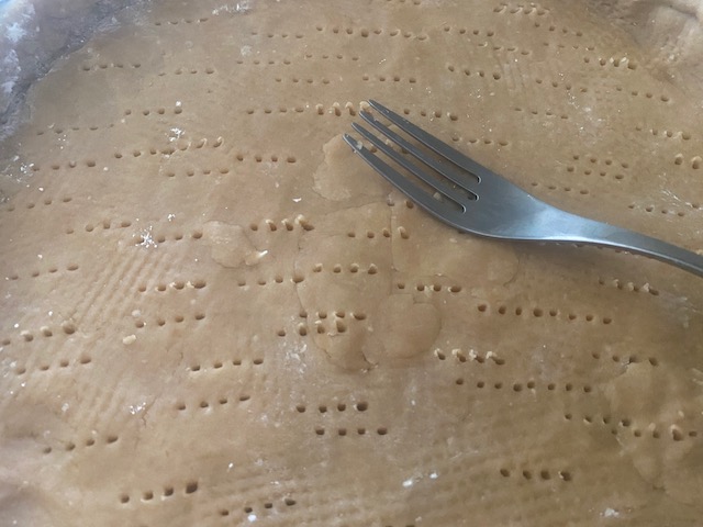 型の底にフォークなどで穴をまんべんなくあけ