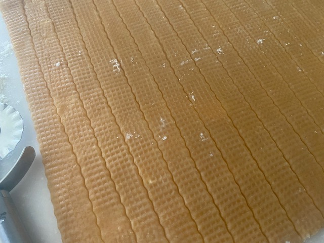 ②やすませた生地の100gを除いて 残りは3〜4mm厚さにのばして