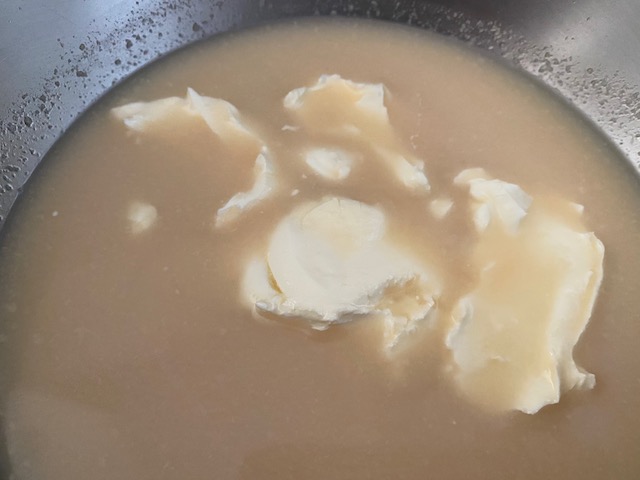 ①糀甘酒に 室温に戻してやわらかくした