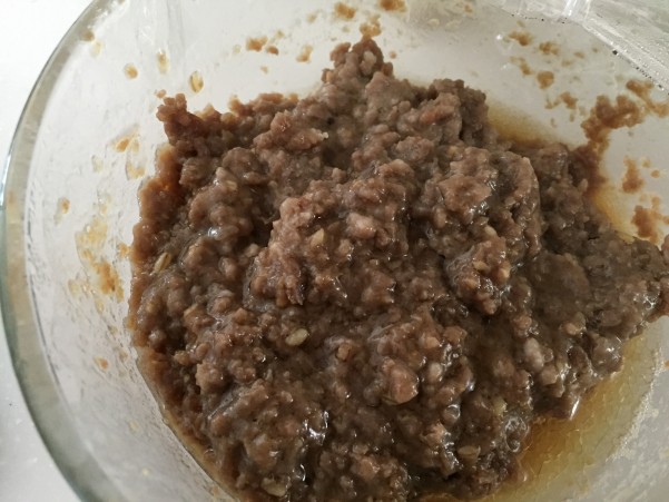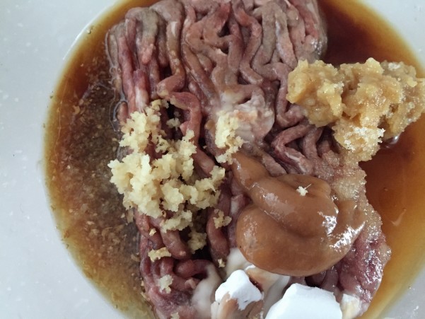 ★肉味噌の材料は加熱前によくかき混ぜることがポイントです