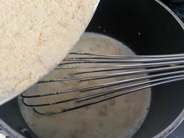 沸騰直前に 火を弱め 混ぜ合わせた粉を