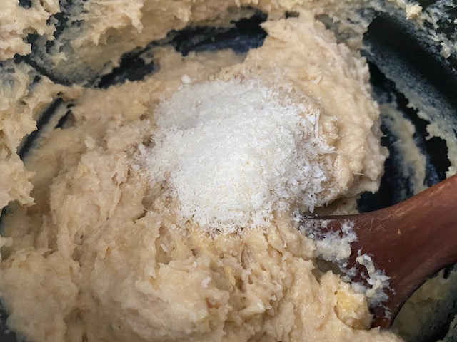 パルミジャーノ大さじ3を加え 手早くかき混ぜる
