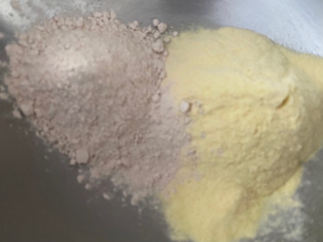 ①デュラム・セモリナ粉と 日清全粒粉は混ぜ合わせておき