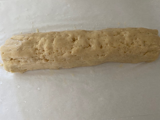 水で手を濡らしながら 直径5cmの棒状に伸ばし