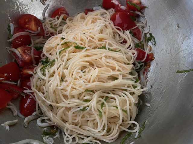 ★そうめんはしっかり水気を切ってから和えます