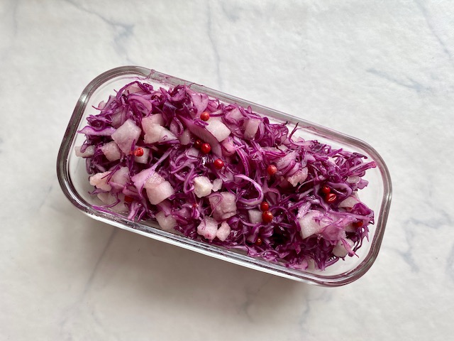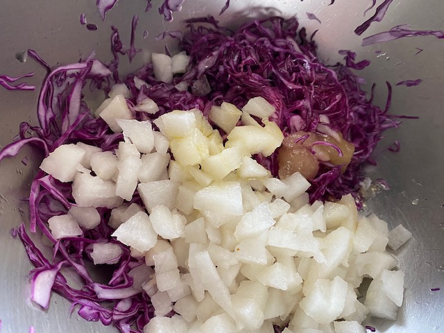その紫キャベツを使って早速コールスローを