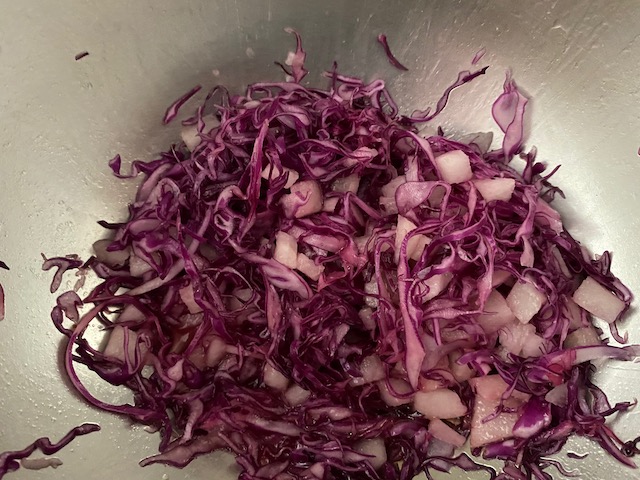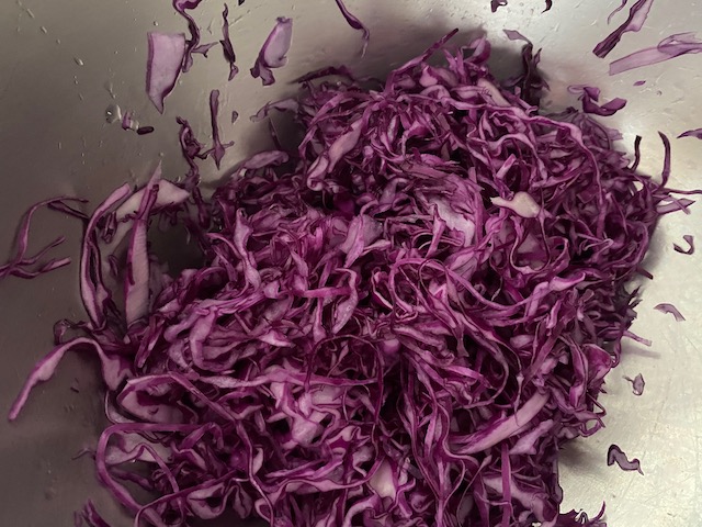 ①紫キャベツは千切りにして塩をふり