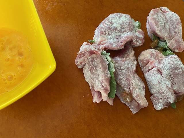 軽く塩・コショウ 小麦粉・溶き卵・パン粉を