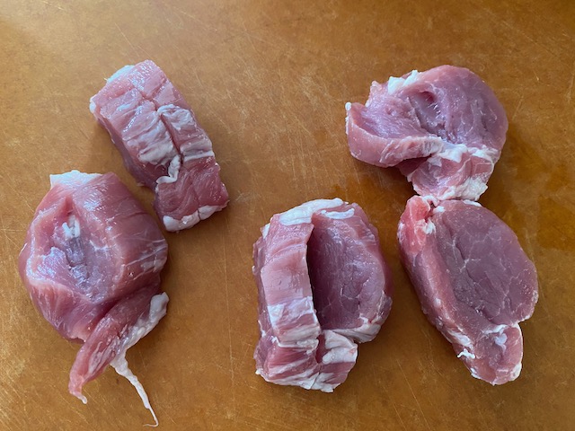 ①豚ヒレ肉は2cm弱の厚さに切り 真ん中に切り込みを入れ