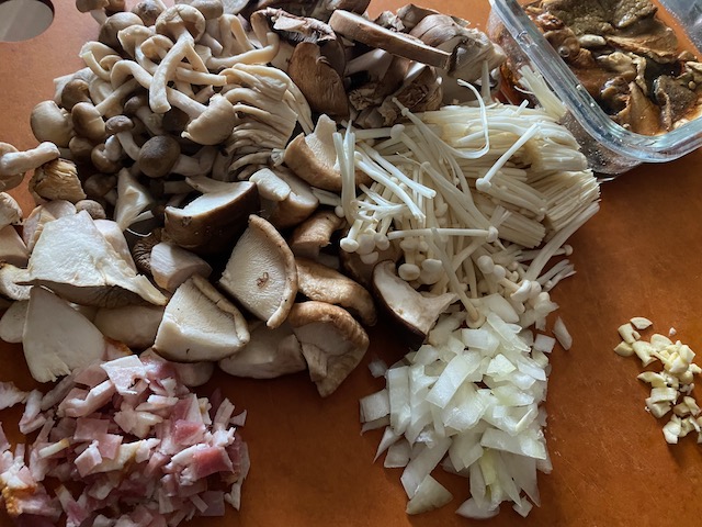 ポルチーニはぬるま湯につけて戻してからざく切り