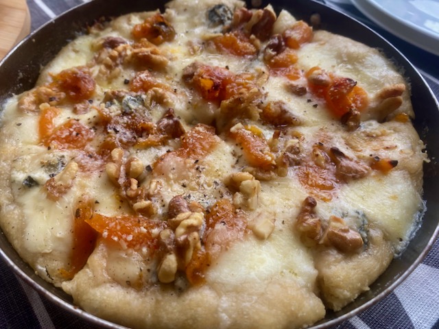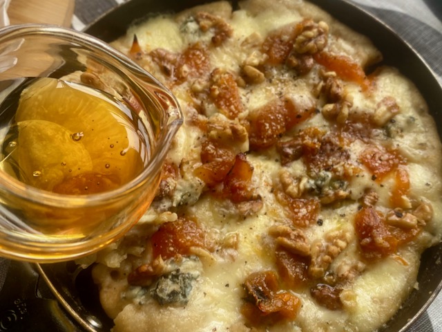 ゴルゴンゾーラ)あんぽ柿を乗せる