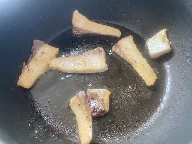 ①残ったぶりに白ワインをかけ