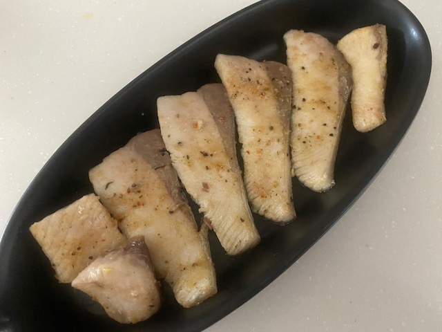 小さじ一のオリーブオイルで軽く焼き
