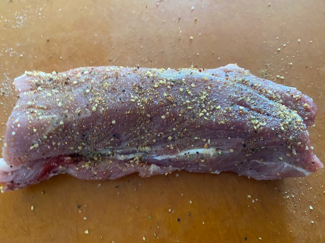 ①豚ヒレ肉は全体にきび砂糖とスパイス塩をふり