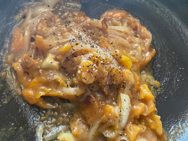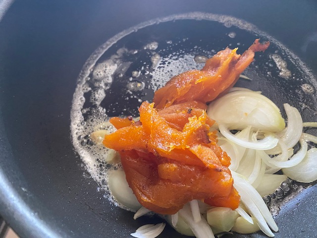 あんぽ柿は玉ねぎと共にバターで炒め