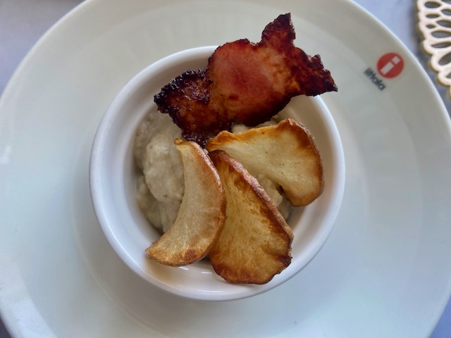 フライにした菊芋と カリカリベーコンを添えています