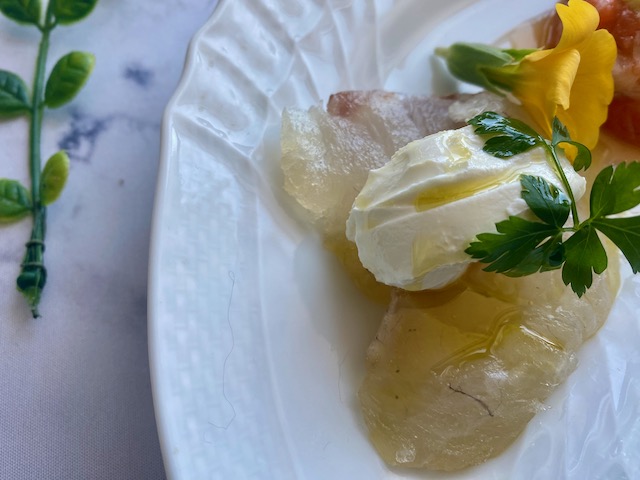 鯛の昆布締めクリームチーズ添え