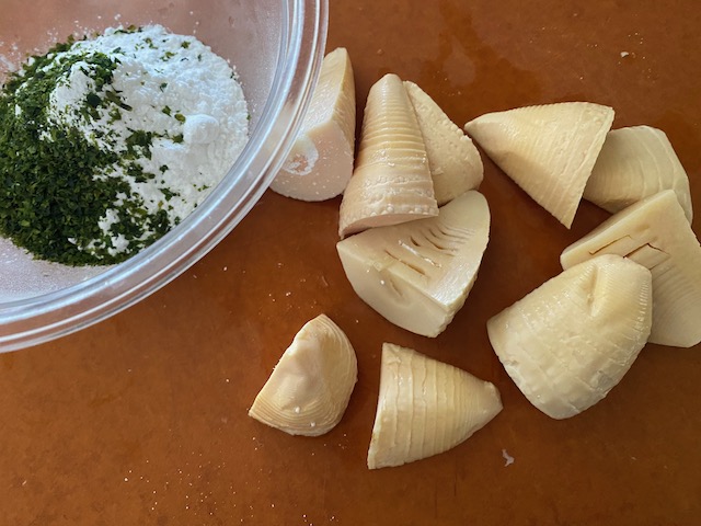 ②筍を衣に絡め