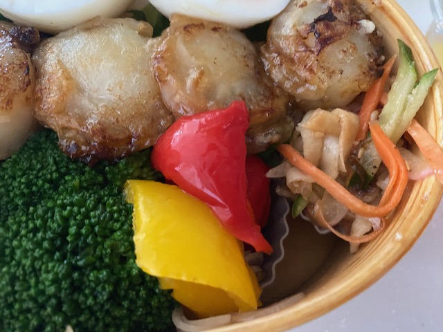 ホタテのソテーを斜めに詰めたご飯に