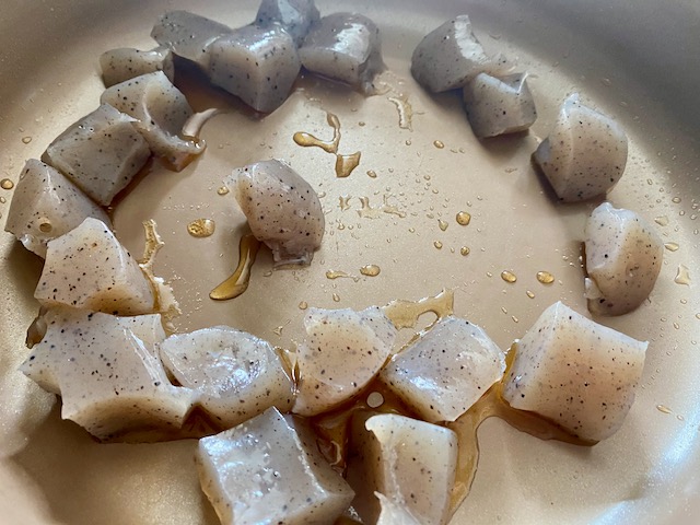 ②ごま油で こんにゃくを炒め