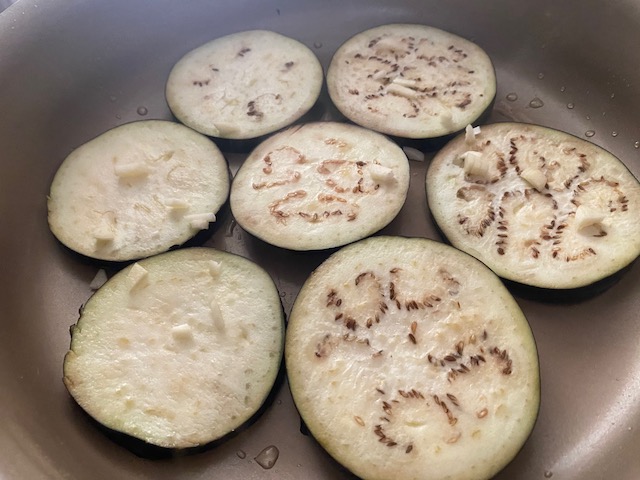 ①米なすは1cm弱の輪切りにして塩をふり