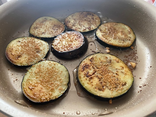 ②なすの水気を拭き取り 米油を入れた