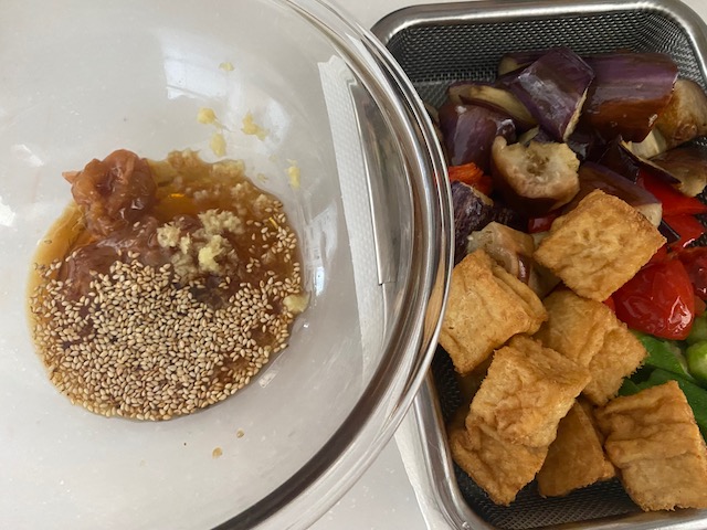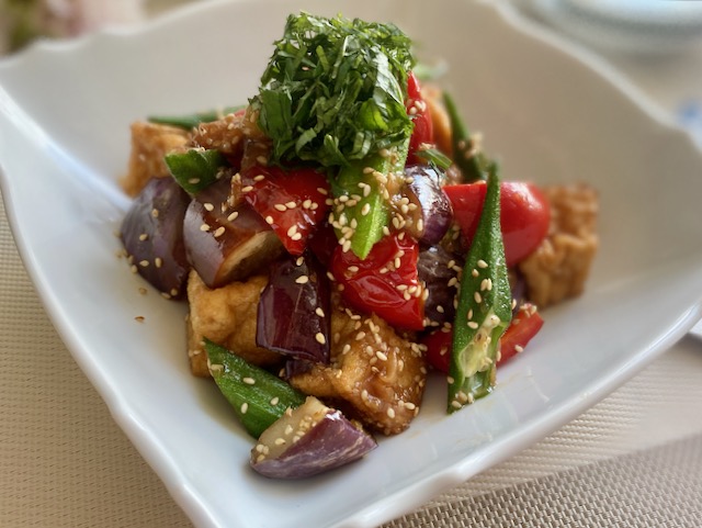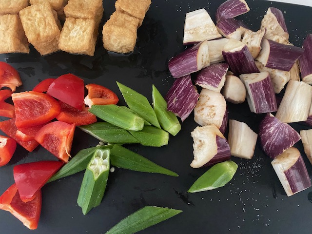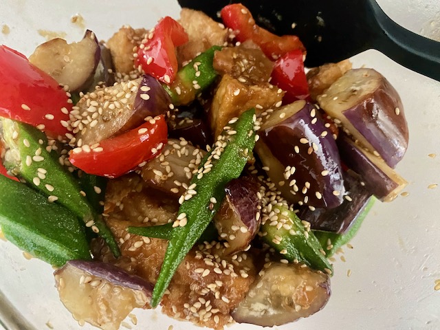 なすとパプリカオクラは多めのオイルで揚げ焼き風