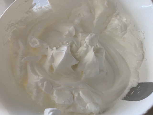 ①卵白をしっかり泡立てコーヒーときび砂糖を加え