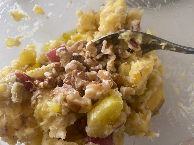 よく混ぜ合わせたらくるみを散らす